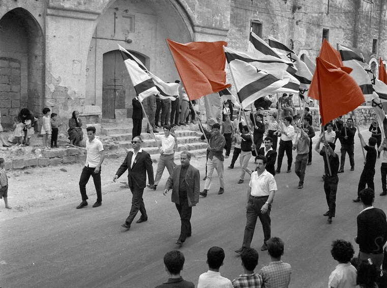 מצעד אחד במאי משותף יהודי-ערבי בנצרת, שנות החמישים.