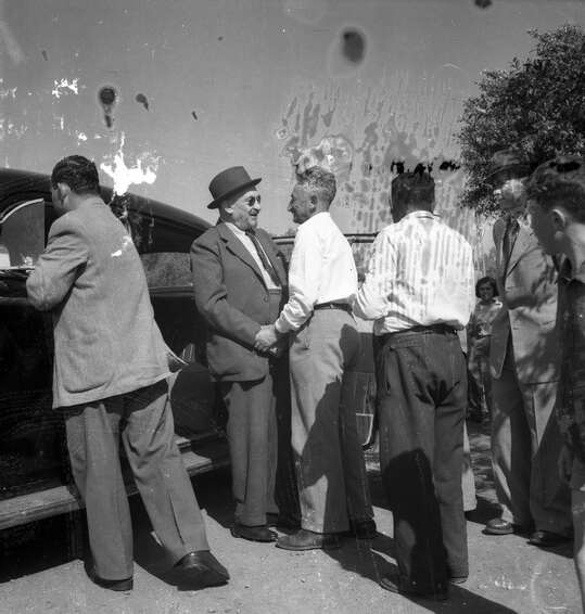 חיים ויצמן מגיע לעין חרוד. שלמה לביא מקבלו בחמימות: