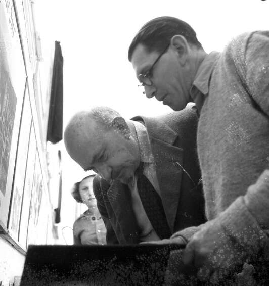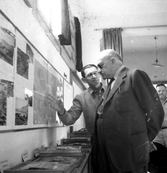 שמואל סבוראי מדריך את ויצמן במוצגי בית שטורמן: