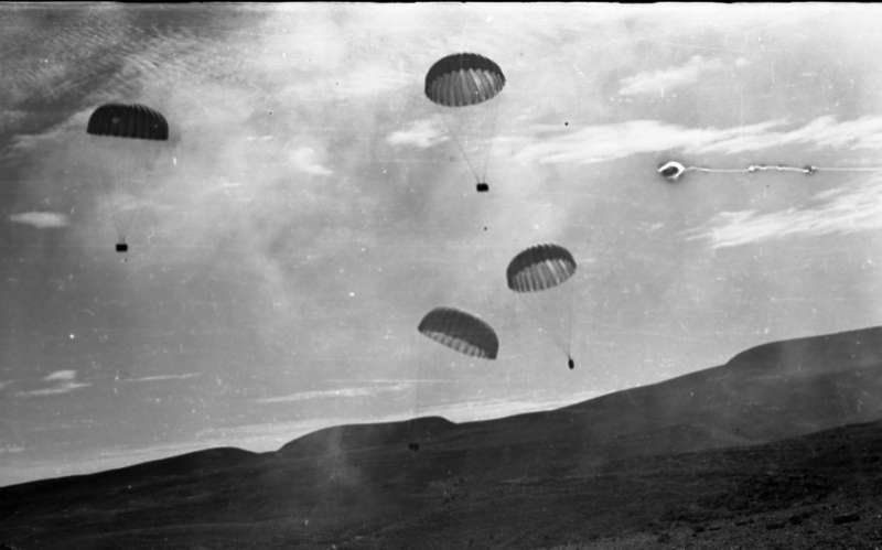אזור המיישר (קאע אל קריק) סומן כמקום להצנחת הספקה לכוח. בשמים נראה מטוס דקוטה שמביא ציוד