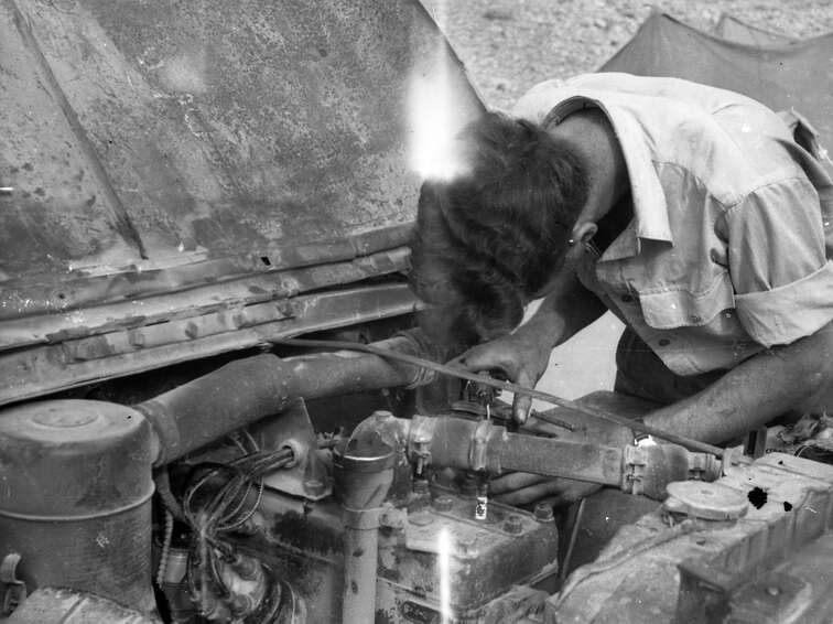 משה בן צבי מטפל בטעינת מצברים במחנה נחל חיון