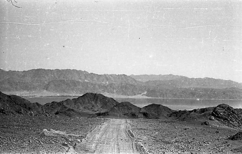 ממחנה נחל חיון נבדקו שתי חלופות לאילת: אחת דרך הערבה והשנייה לאורך הגבול המצרי דרומה. בתצלום: דרך הערבה חניון ליד עין רדיאן (1951 היאחזות הנח"ל יטבתה).