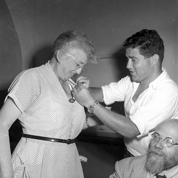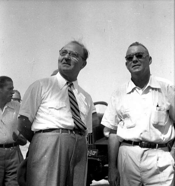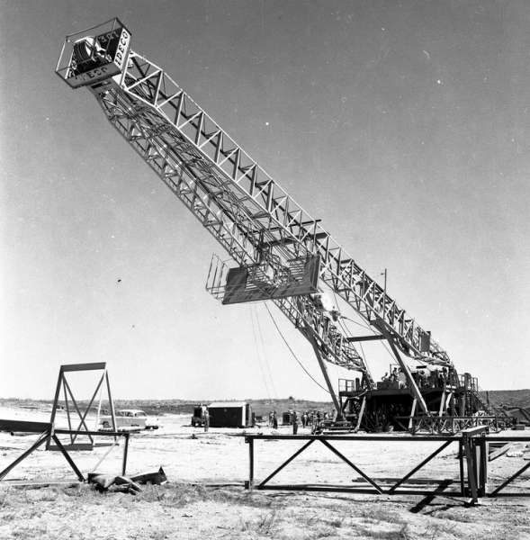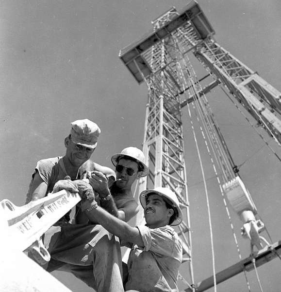 בתל סאפי ליד כפר מנחם הקימו מגדל לחיפוש נפט. שר האוצר לוי אשכול הגיע להתרשם: