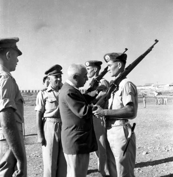 מחזור של שוטרי משמר הגבול סיים את הכשרתו. בתצלומים ניתן לראות את מסדר הסיום, אותו סוקרים הרמטכ"ל משה דיין ושר הביטחון פנחס לבון, המעניק אות לחניך המצטיין: