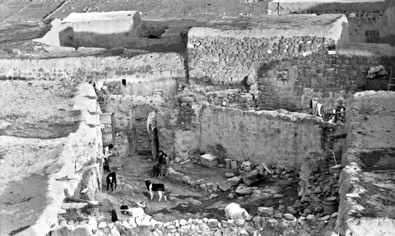 בתי הכפר נסמכים אחד על השני. הם נבנו מאבנים שרידי המבצר ולבני בוץ