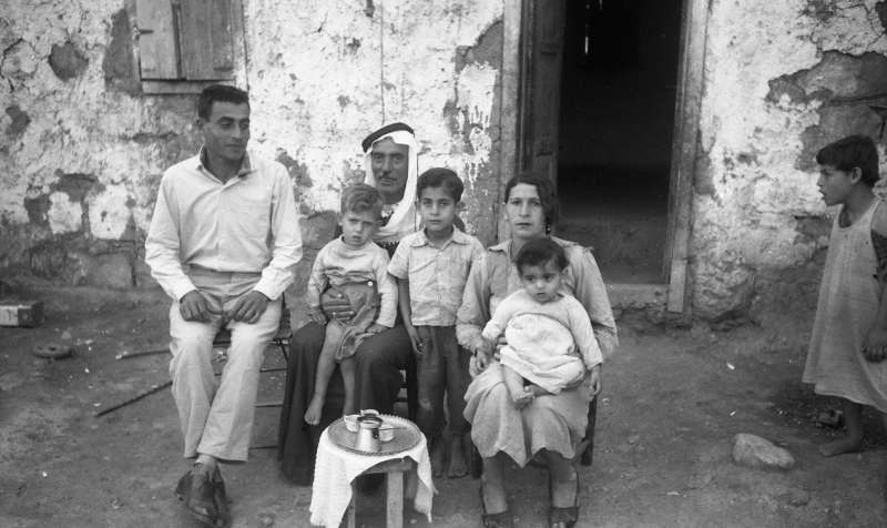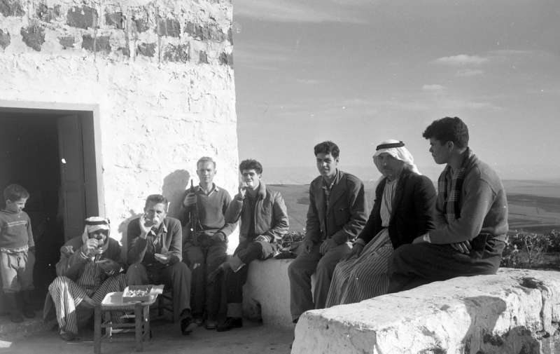 פלטיאל קוריס (שלישי משמאל) מבלפוריה היה איש כוחות הביטחון. בתצלום כאן הוא מתארח בביתו של עבדול ראזק זועבי בטמרה