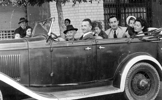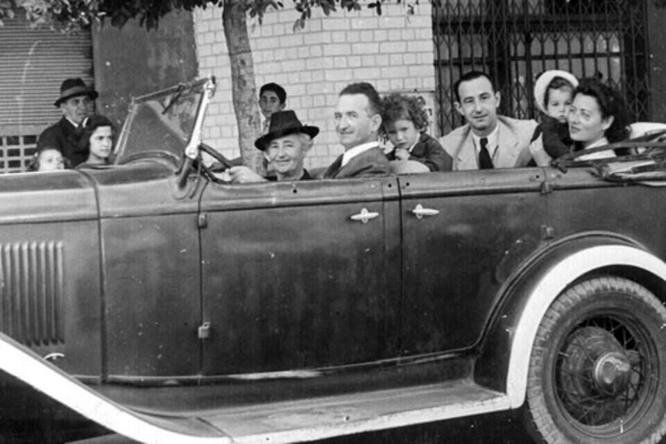 1 במרס 1942: שמואל עם מכוניתו בתל אביב. במכונית זו העביר נשק בהסתר לאנשי ההגנה