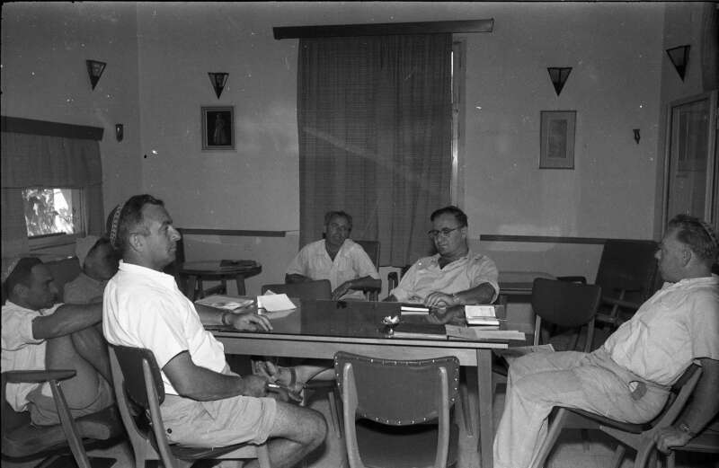 28. בעמק נמצאים מספר קיבוצים השייכים לתנועת הקיבוץ הדתי. עין הנצי"ב אחד מהם. הוקם בט"ו בשבט תש"ו 1946. נקרא ע"ש הרב נפתלי צבי יהודה ברלין (הנצי"ב מוולוז'ין), ציוני דתי שהטיף לעליה ולהתיישבות בארץ ישראל. מייסדיו ניצולי שואה מגרמניה. בתצלום: "ישיבת מזכירות": מימין: יוסף קרניאל (ספל), יצחק ניר, נפתלי שפירא, אהרון רייפן, משה פשחור, יחזקאל בן שלום.