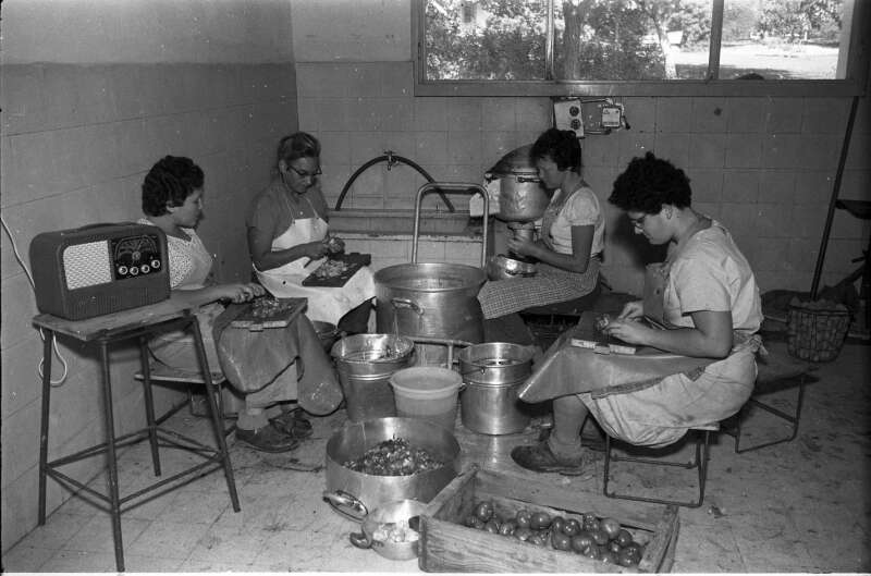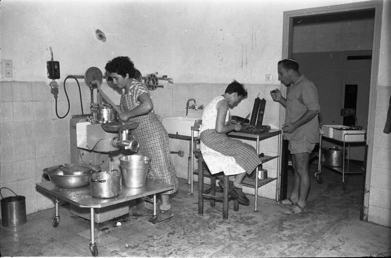 32. עין הנצי"ב, עבודת קילוף במטבח. עם מכשיר רדיו של פעם.