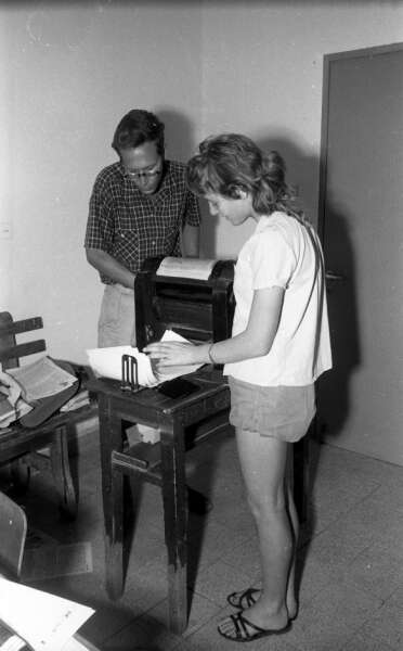 26. ליד מכונת השכפול בבית הספר של כפר יחזקאל