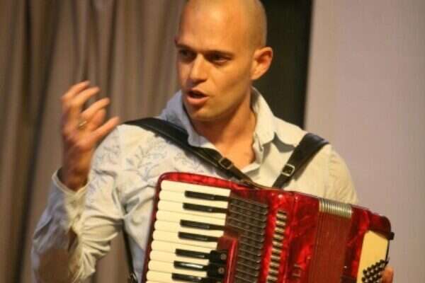 בעיצומו של "המופע של צח חרמון" מבקש חרמון מהאנשים בקהל להיזכר ברגע מאושר בחייהם ולחוות אותו במלואו בעיניים עצומות. זה קורה בדיוק אחרי שהוא מנגן באקורדיון שיר של אדית פיאף, ולאחר שצפינו בסרטון החתונה שלו. כשהוא מבקש מהקהל לשתף בזיכרונות האושר, נרשמות תזוזות של אי נוחות בכיסאות ורק ידיים ספורות מורמות. "מישהו מאושר ברגע זה-" מאתגר חרמון. כל הידיים צונחות, חוץ מידו של הבחור הגבוה שיושב לפניי עם בת זוגו, ומוזמן עכשיו לבמה.