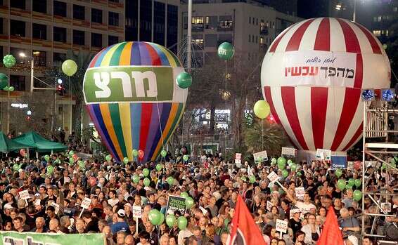 עשרות אלפי אנשים השתתפו הערב בעצרת השמאל בכיכר רבין בתל אביב. בעצרת שנערכה תחת הכותרת "ישראל רוצה שינוי" נכחו אלפי בני אדם שנשאו שלטים כמו "מהפך עכשיו", "ביבי הביתה", וכן סממנים מפלגתיים מרובים כמו שלטי מרצ בצבע ירוק ושלטים של תנועת "המחנה הציוני".