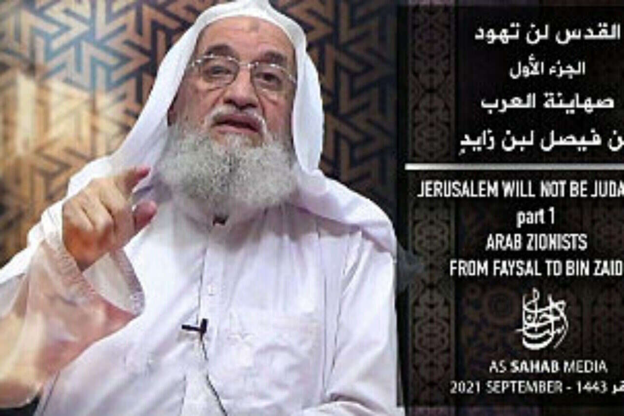 לרגל יום השנה ה-20 למתקפת הפיגועים האווירית שביצע אל-קאעידה על אדמת ארה"ב, הארגון פרסם היום (שבת) סרטון חריג שמאשר כי יורשו של בן לאדן ומנהיג הארגון, איימן א-זוואהירי, עודנו בחיים. בסרטון בן 60 הדקות, שפורסם באתר שעוקב אחרי ארגוני ג'יהאד SITE, אמר א-זוואהירי ש"ירושלים לא תיוהד," תקף את ה"משת"פים" של ארה"ב בעולם הערבי לשיטתו, ובראשם ערב הסעודית, והגדיר אותם "הערבים הציוניים", מהמלך הסעודי לשעבר פייסל ועד בן זאיד, יורש העצר של איחוד האמירויות.