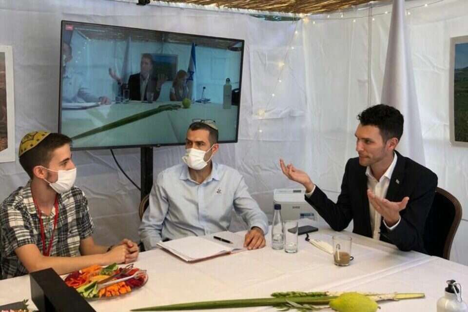 ח"כ עידן רול מארח עולים חדשים בסוכה של משרד החוץ, צילום: שלי צוקרמן