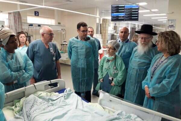 יעקב ליצמן מבקר את האחות הפצועה בבית החולים // צילום: ליעד אביאל