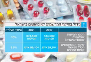 בישראל חל גידול של יותר מ-90% בהיקף רישום מרשמים לאופיאטים, תרופות משככות כאבים וממכרות. משרד הבריאות מתחיל בימים אלו בצעדים ראשונים שנועדו להגביל את השימוש בתכשירים, שבארה"ב כבר הוכרזו כ"איום על בריאות הציבור".