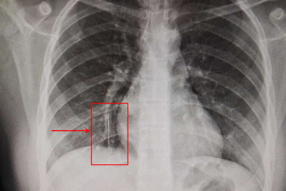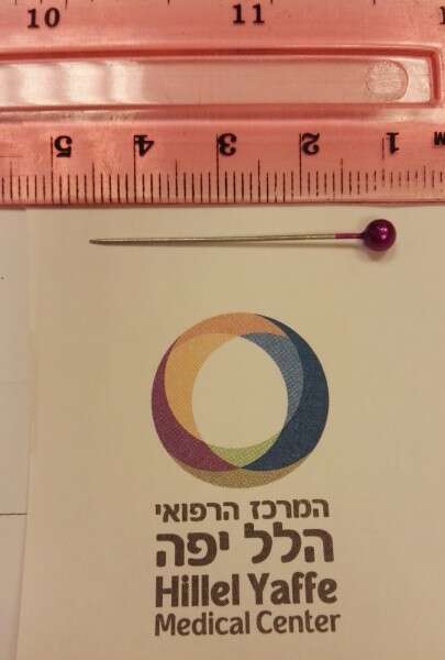 הסיכה באורך 3.5 שהוצאה מהריאה בהליך רפואי מורכב // צילום: המרכז הרפואי הלל יפה