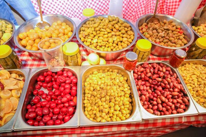 למרות הניסיון לסתור את הדעה הקדומה, אי אפשר להתעלם מריחות הבשר הטרי והדגים שעלו באפנו מייד עם הכניסה ליריד. בדוכנים השונים נמכר בשר טרי, והעוברים והשבים נהנו מארוחות שוק טעימות, לרוב אפילו ללא מזלג וסכין.