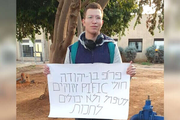 נתנאל רודל עם השלט. התרופה שינתה את חייו | צילום: ללא קרדיט