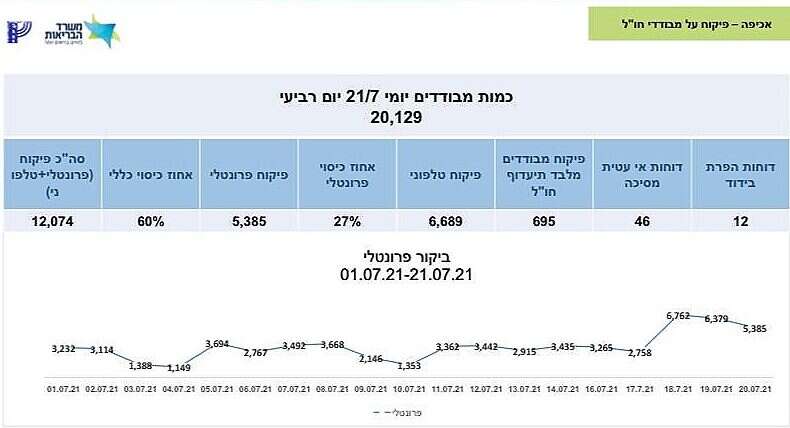 כמו כן, מקדם ההדבקה עלה אתמול ל-1.42 - הקרוב ביותר עד כה למקדם ההדבקה הגבוה ביותר מאז פרוץ המגיפה, שעמד על 1.55 ב-15 בספטמבר 2020. בממוצע שבועי, מספר המאומתים כעת עומד על כ-1,000 איש. בשבוע שעבר, לשם השוואה, היו 759 חולים בכל הארץ. מתוך השבים מחו"ל בעשרת הימים האחרונים ואומתו אתמול, 150 איש (10.5%) נמצאו חולי קורונה – מתוכם היו 118 מחוסנים.