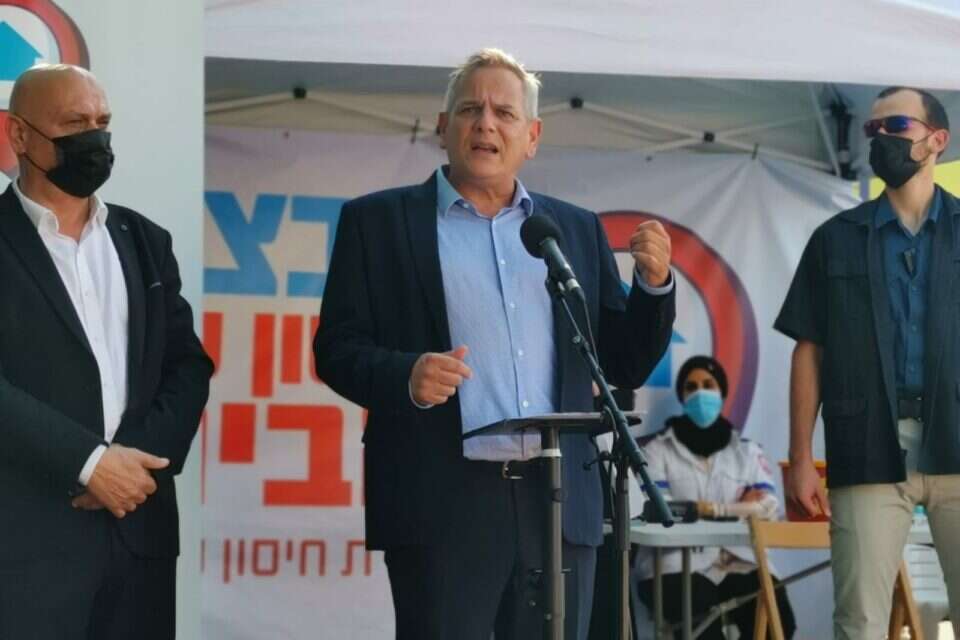 מבצע "חיסונים עד הבית" - השר הורוביץ בהצהרה בכפר קאסם // קרדיט: שמואל בוכריס