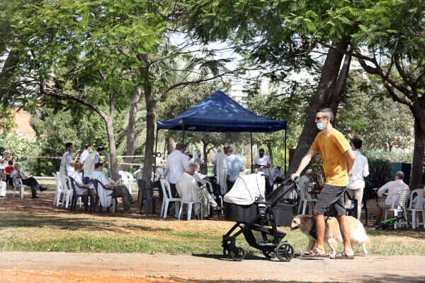 אנשים עם מסכות באוויר הפתוח (למצולמים אין קשר לידיעה, ארכיון) | צילום: גדעון מרקוביץ'