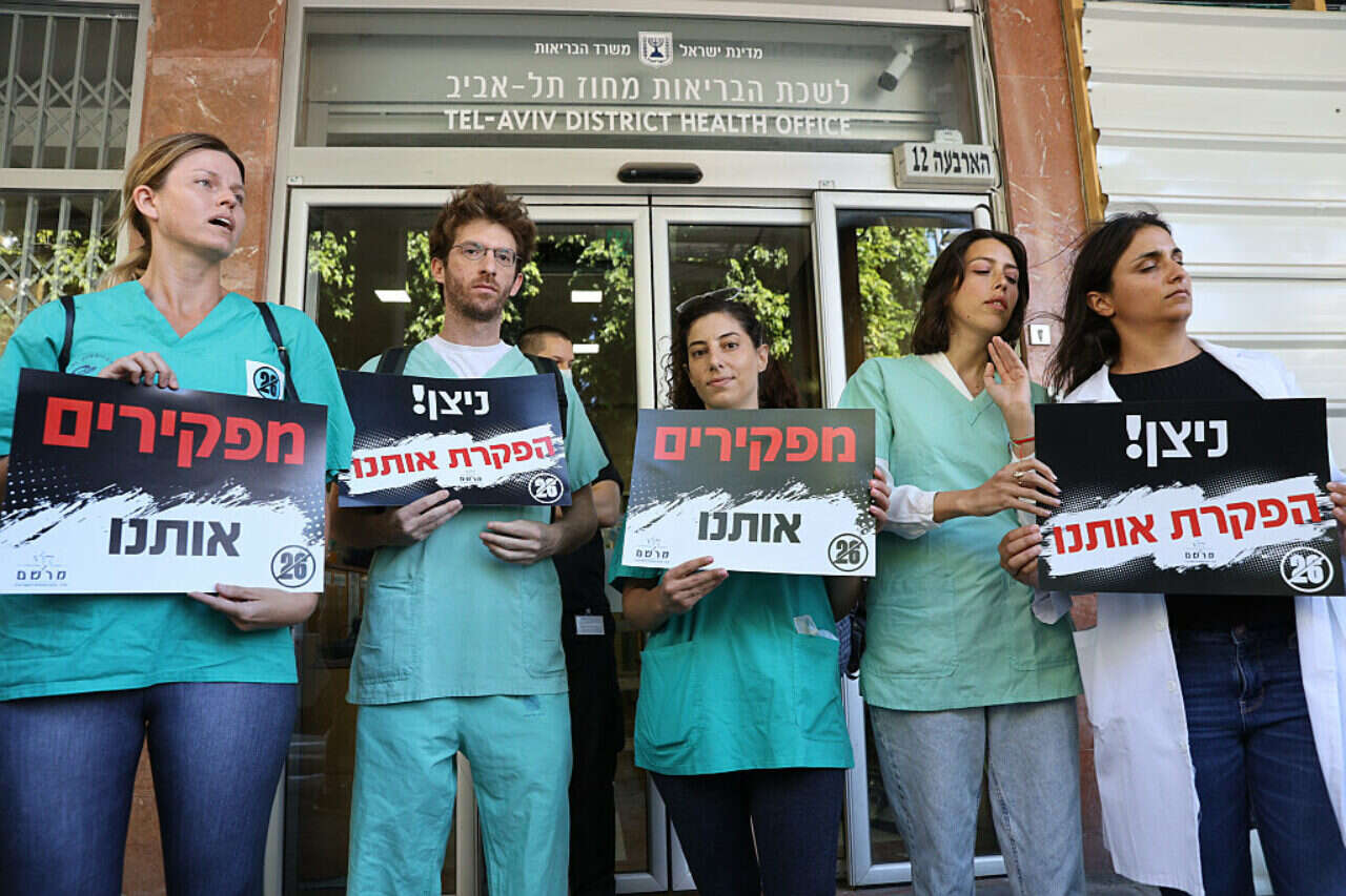 המוחים התכנסו מתחת לבניין משרד הבריאות ונשאו שלטים שעליהם נכתב "מפקירים אותנו", "ניצן - הפקרת אותנו" ו"לא תעמוד על דם רופאיך".