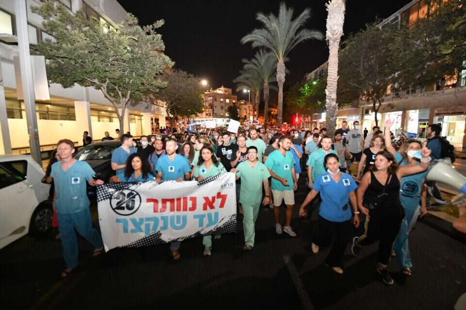 מחאת המתמחים: מאות מפגינים בתל אביב