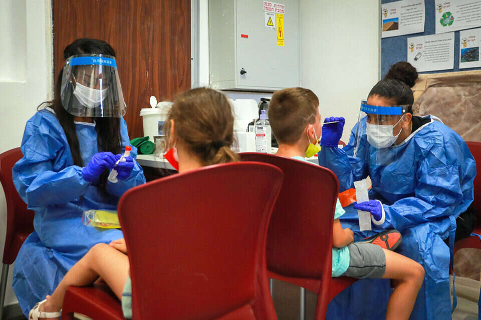 ילדים עוברים בדיקת קורונה בבית ספרם, צילום: אורן בן חקון