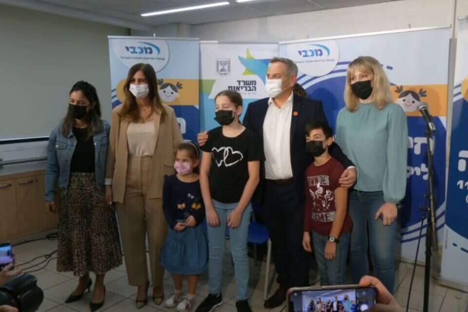 שר הבריאות ניצן הורוביץ הגיע היום (שלישי) לקופ"ח מכבי בת"א כדי לפתוח את מבצע חיסוני הילדים במתחם החיסונים במקום.