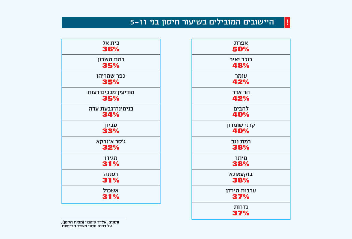 מנתוני קופת חולים מכבי עולה כי נרשמה עלייה של 1%-2% בחיסון במגזרים החרדי והערבי. במגזר החרדי התחסנו 5.1% מבני 5-12, במגזר הערבי 4.1%, ואילו במגזר הכללי 25.5%.