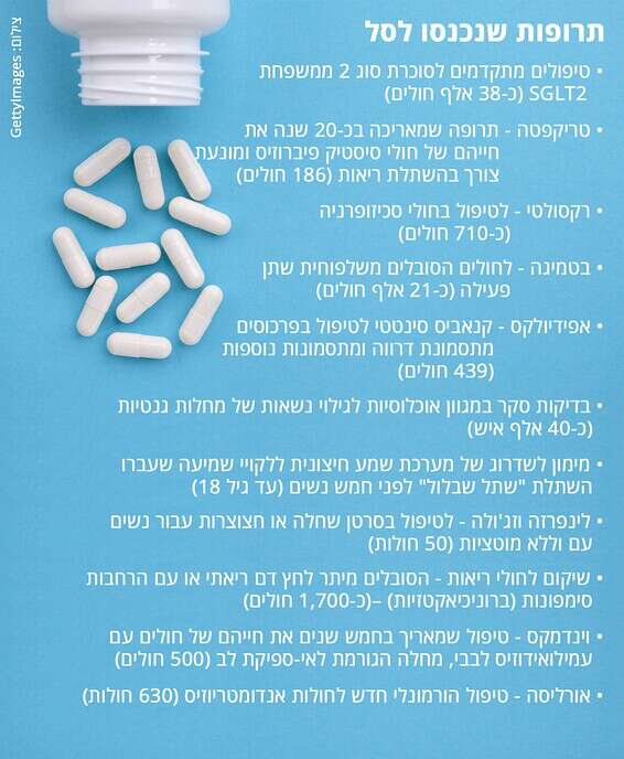 הוועדה פרסמה אתמול את החלטותיה החדשות ולפיהן ייתווספו לסל התרופות הממלכתי עוד 117 תרופות וטכנולוגיות רפואיות חדשות ויקבלו אותן כ־170 אלף ישראלים המאובחנים עם שורה ארוכה של מחלות קשות, חלקן קטלניות וחלקן מחלות המגבירות את הסיכון לחלות באופן קשה מאוד בקורונה כמו מחלות הריאה, הלב והסוכרת.