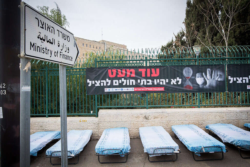 מחאת בתי החולים ליד מטה משרד האוצר, בחודש שעבר // צילום: אורן בן חקון // מחאת בתי החולים ליד מטה משרד האוצר, בחודש שעבר