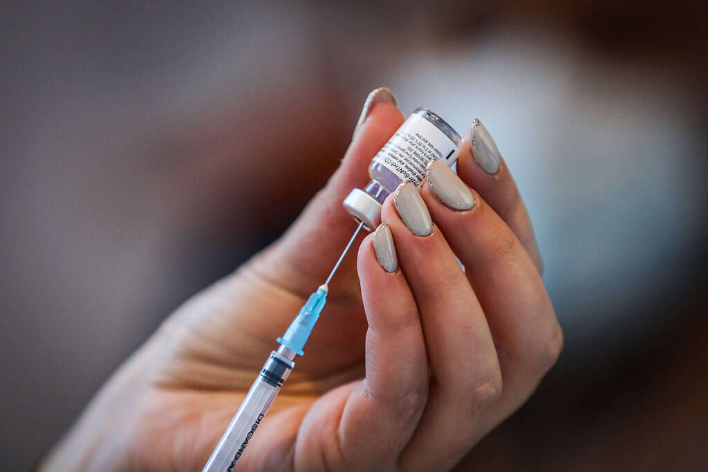 שאיבת מנת חיסון מבקבוקון // צילום: אורן בן חקון // שאיבת מנת חיסון מבקבוקון