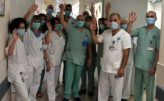 צילום: דוברות פדה פוריה // ביי ביי קורונה: במחלקת הקורונה בבית החולים פדה פוריה נפרדים מהחולה האחרון - וסוגרים את המחלקה
