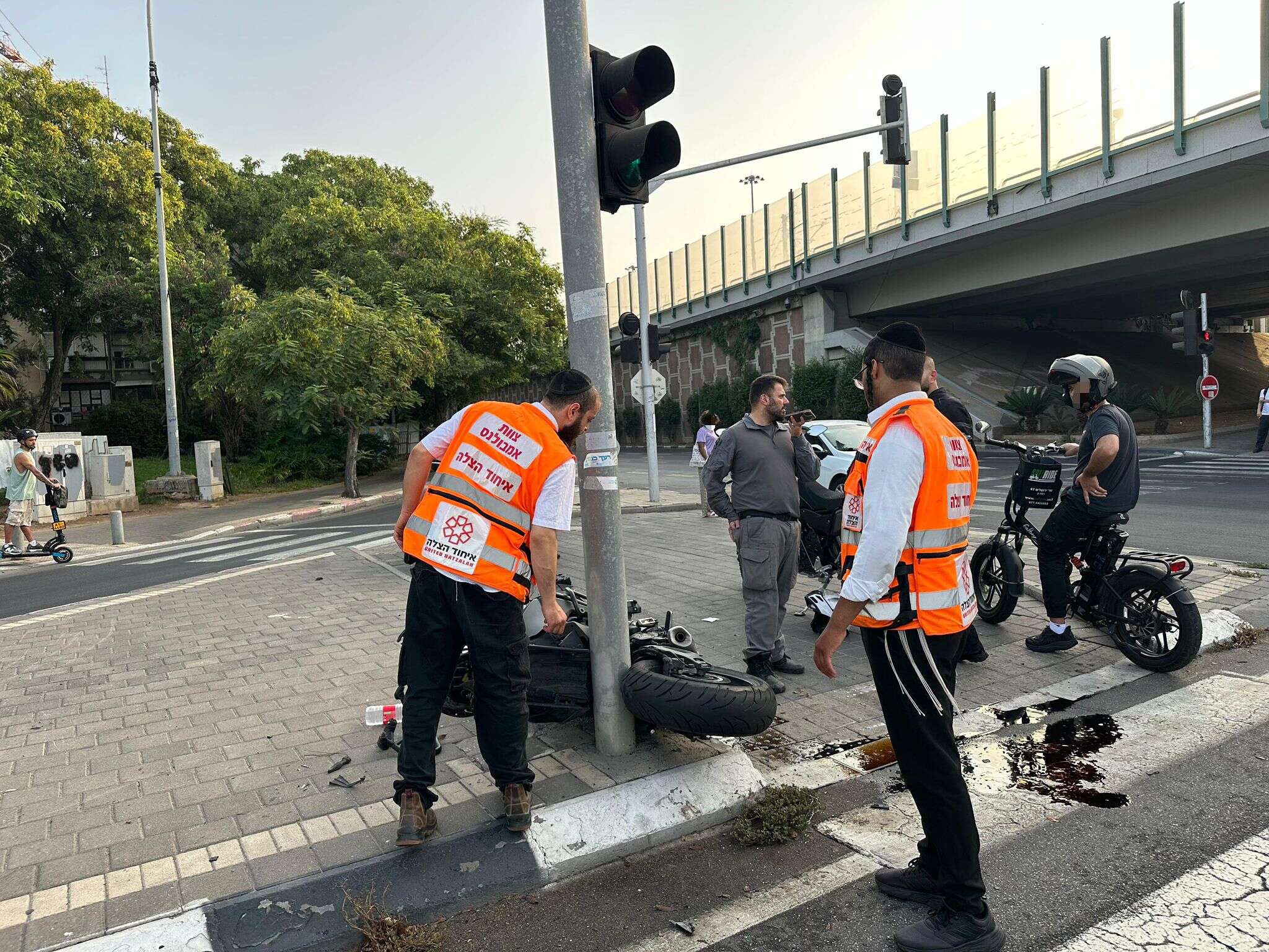 רוכב אופנוע נפגע מאוטובוס בתל אביב, צילום: איחוד והצלה