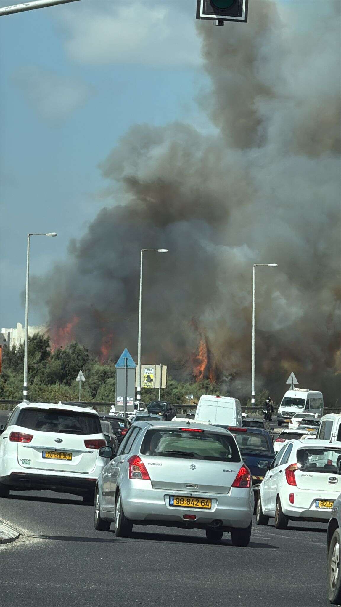 שריפה באזור עין המפרץ - כביש 4 באזור נחסם