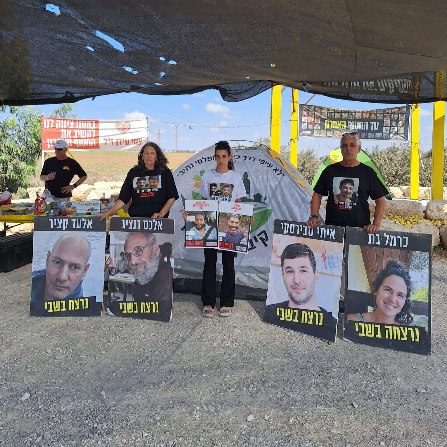 ארבל יהוד ומשפחתה במאהל צומת שער הנגב, צילום: מטה משפחות החטופים