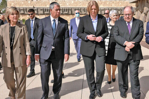 נשיאת הבונדסטאג ברבל באס עם יו"ר הכנסת מיקי לוי ביד ושם | צילום: אי.אף.פי