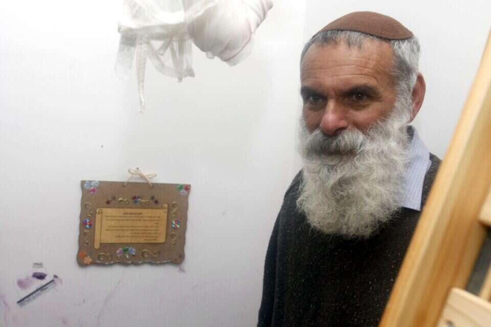 הרב אביחי רונצקי ז"ל בבית משפחת פוגל לאחר הרצח // צילום: ליאור מזרחי