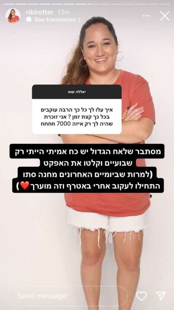 שאלה נוספת ביקשה מרוטר לעדכן בקשר ליחסיה עם אביה כעת, אחרי שיצאה מבית "האח". כזכור, רוטר סיפרה בבית "האח הגדול" על הקשר הטעון של השניים שלווה במילים קשות ומזעזעות שאמר לה אביה החרדי כשהבין שהיא בהליך של חזרה בשאלה. "את בקשר עם אבא שלך?", שאלו בפשטות. "לא", השיבה ריקי בתוספת אימוג'י של לב אדום על רקע תמונה שלה ושל אביה (שחלק מפניו טשטשה) מחויכים, כשהיא רוכנת על כתפו.