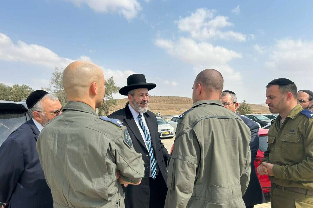 הרב הראשי דוד לאו ביקר היום (שלישי) את החיילים והחיילות בגפים הטכניים, טייסות התמיכה וביחידות נוספות בבסיס חיל האוויר בנבטים, וביקש לחזק אותם ולהעביר להם את תמיכת עם ישראל במשימתם החשובה בימי מלחמה אלו.