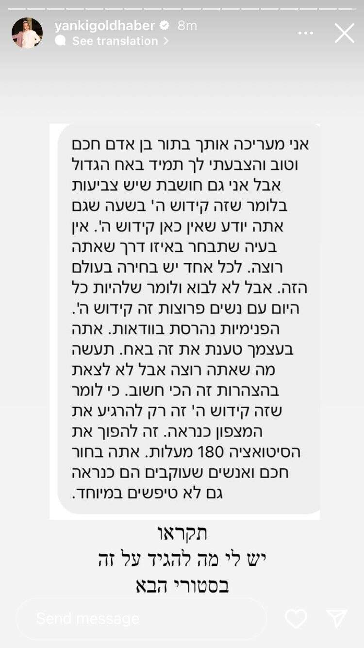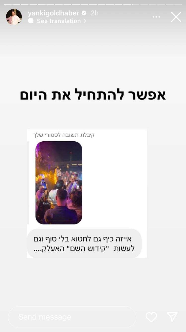 הסטורי של יענקי גולדהבר // מתוך אינסטגרם