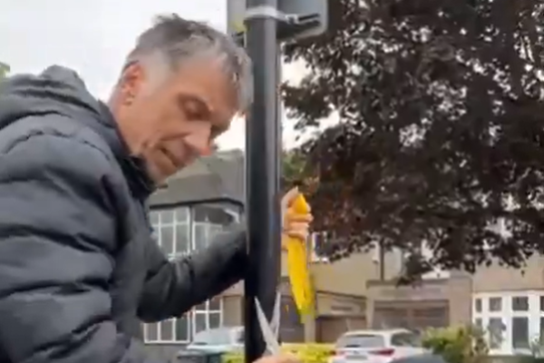 תיעוד מרתיח במיוחד שרץ ברשתות החברתיות מראה 3 אלמונים עוברים ברחובות שכונה יהודית בלונדון - ומורידים סרטים צהובים למען החטופים מעמודים.