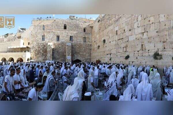 אלפים התכנסו הבוקר (שישי) ברחבת הכותל המערבי לתפילת ראש חודש חגיגית (תמוז) והודיה על נסי מלחמת ישראל-איראן ומבצע "עם כלביא".