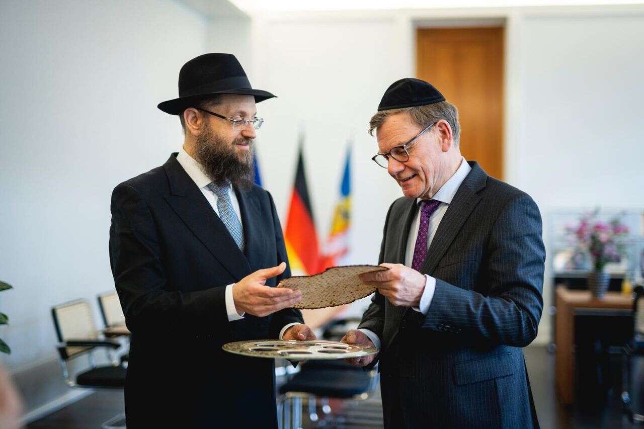 מפגש משמעותי ובעל מסר מדיני ברור התקיים לפני כניסת החג בלשכת שר החוץ של גרמניה בברלין. רבה של העיר, הרב יהודה טייכטל, הגיע לביקור רשמי אצל שר החוץ, יוהאן ואדפול, לרגל חג הפסח הקרב. במהלך המפגש העניק הרב לשר מצות שמורות שנאפו בעבודת יד וכן צלחת סדר מסורתית.
