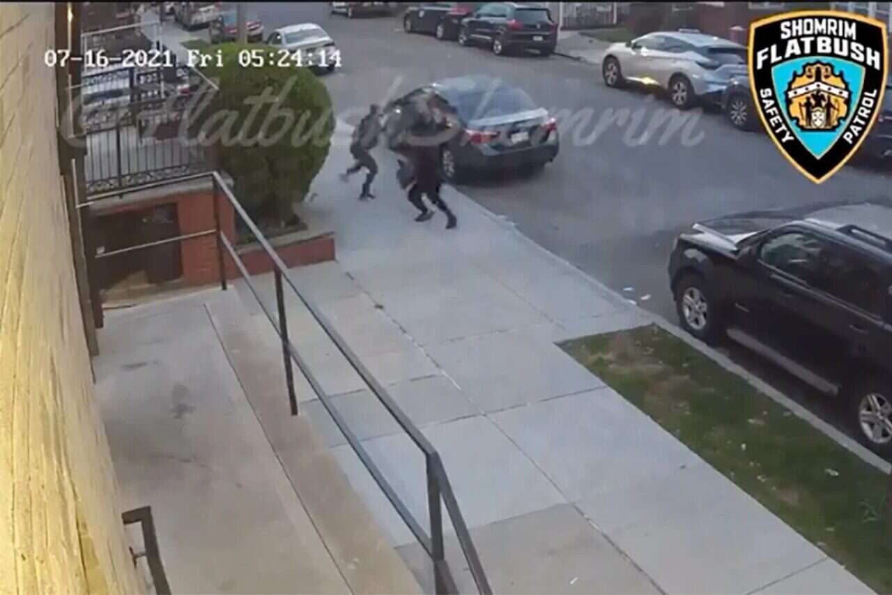 לאור יום, באמצע הרחוב: תקיפה אנטישמית מזעזעת בברוקלין. בתיעוד שהפיץ ארגון "שומרים" נראים שני חשודים תוקפים גבר בעל חזות דתית, בעת שהיה בדרכו לבית הכנסת בשישי בבוקר.