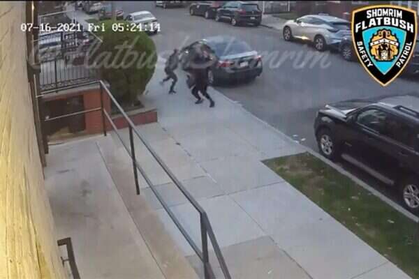 לאור יום, באמצע הרחוב: תקיפה אנטישמית מזעזעת בברוקלין. בתיעוד שהפיץ ארגון "שומרים" נראים שני חשודים תוקפים גבר בעל חזות דתית, בעת שהיה בדרכו לבית הכנסת בשישי בבוקר.