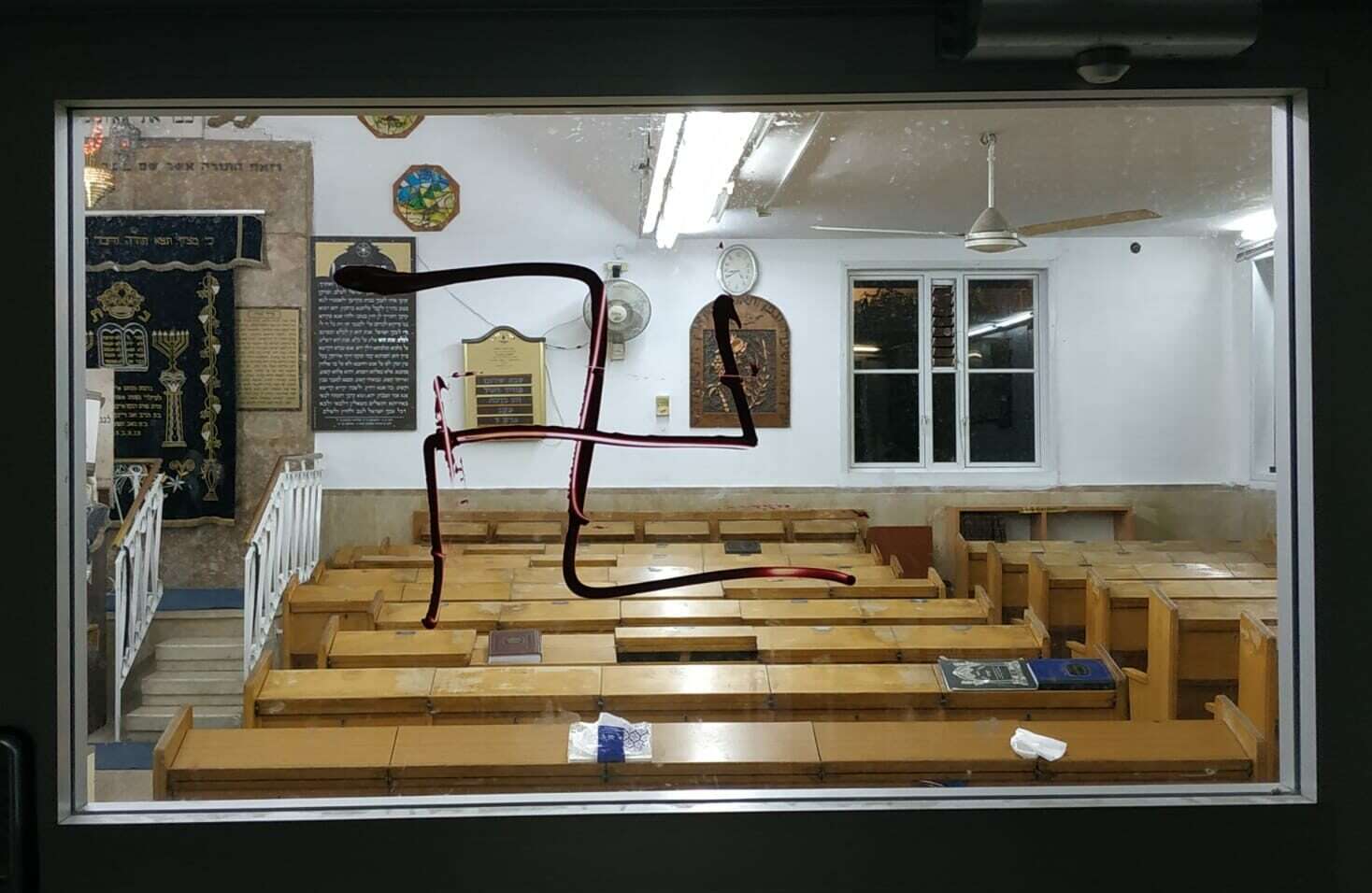 המתפללים, דתיים לאומיים וחרדים, גילו הבוקר את צלבי הקרס בבואם לתפילת שחרית בבית הכנסת • ח"כ יעקב אשר: "פירות באושים של הסתה מתמשכת ונטולת רסן נגד כל דבר שריח של יהדות וחרדים נודף ממנו"