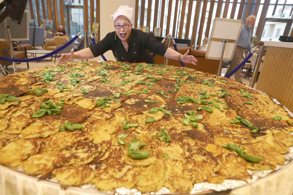 בחנוכה נהוג להכין לביבות - מלוחות או מתוקות, וספוגות שמן לזכר הנס. בבית הדיור המוגן "פאלאס מודיעין" החליטו, ביוזמת אחת הדיירות, ללכת רחוק יותר - וליצור את הלביבה הגדולה בעולם.